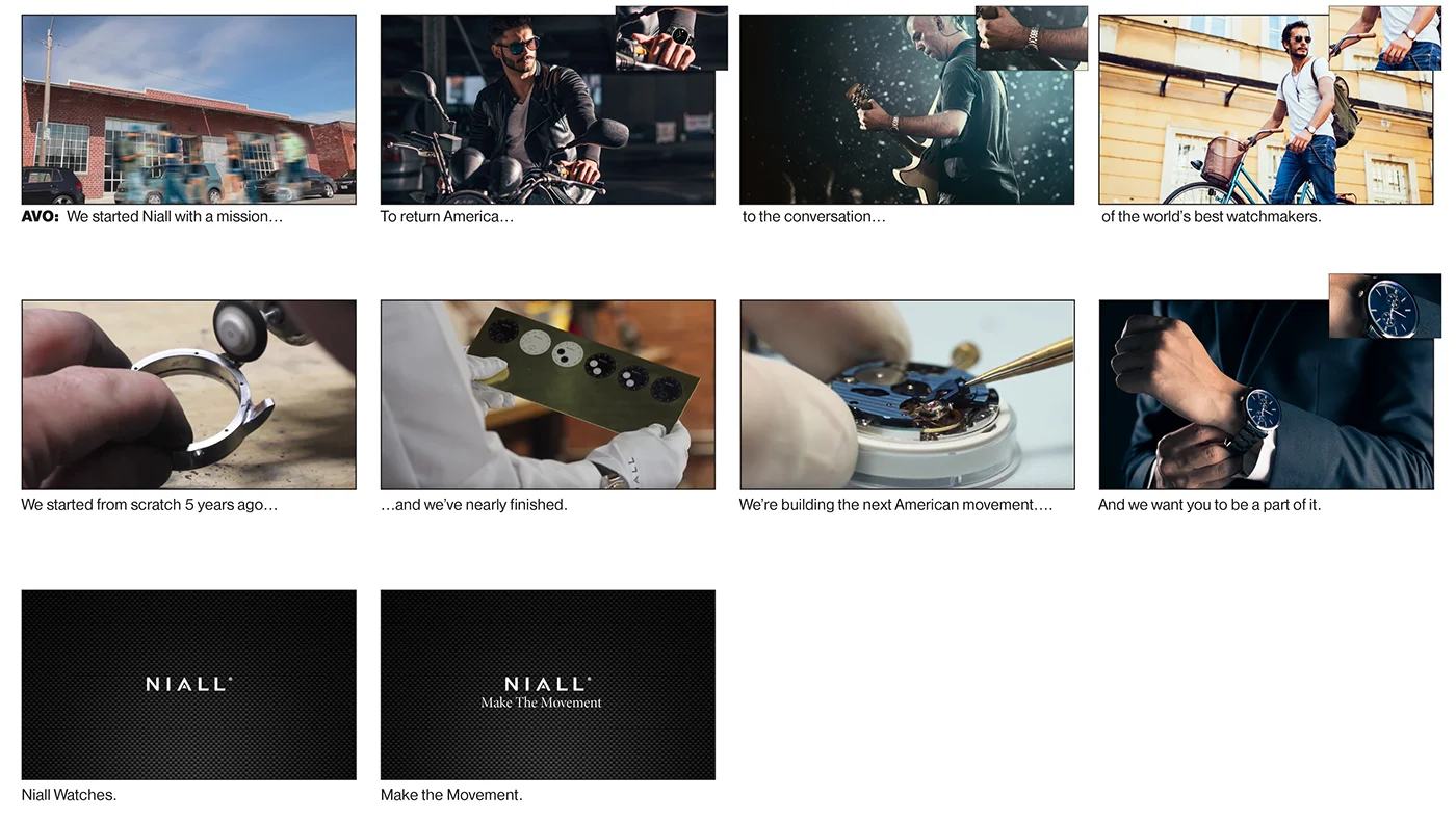 Niall came to us with quite the challenge: To bring America back to the forefront of the watchmaking world. In order to do that we needed a message that challenged consumers. Niall had already been manufacturing 90% of its watch components in the US, but they were still developing their own movement to make it completely American-made.